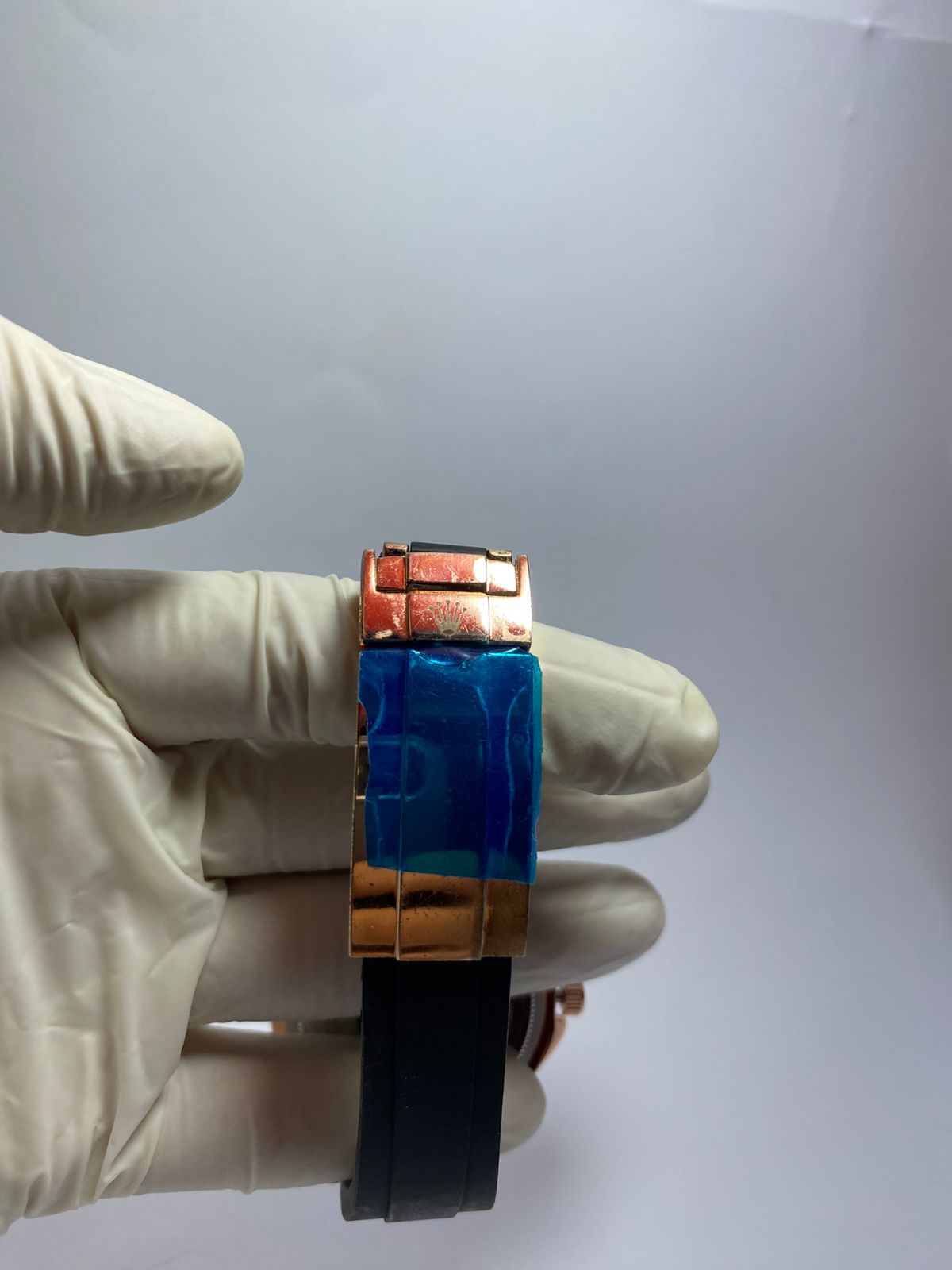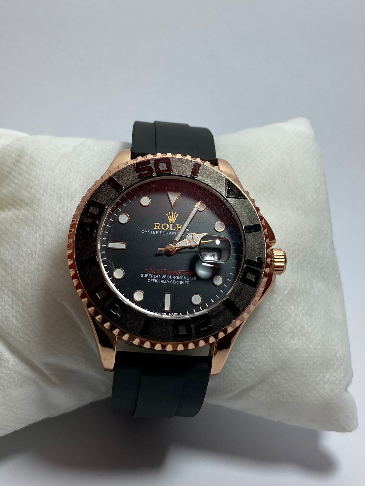 Rolex black colour heavy weight watch with rotating dial with date ,with rubber strap and double lock